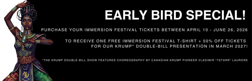 Immersion Festival provides learning opportunities for all ages and levels of mover, from youth, to beginner, to professional. The workshops are open to all.